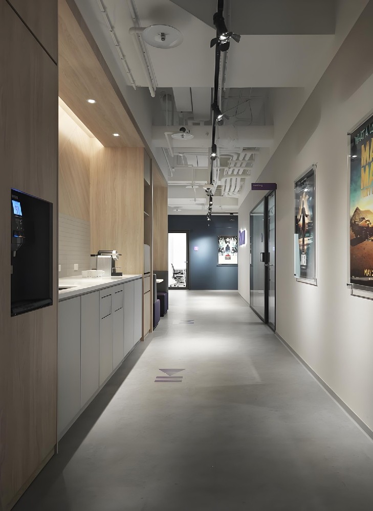 觀為監(jiān)測辦公室設(shè)計通過簡約的線條和色彩搭配,運(yùn)用抽象圖案和鮮艷色彩,以紫色和白...... 項(xiàng)目面積:1100㎡ 施工工期:45天