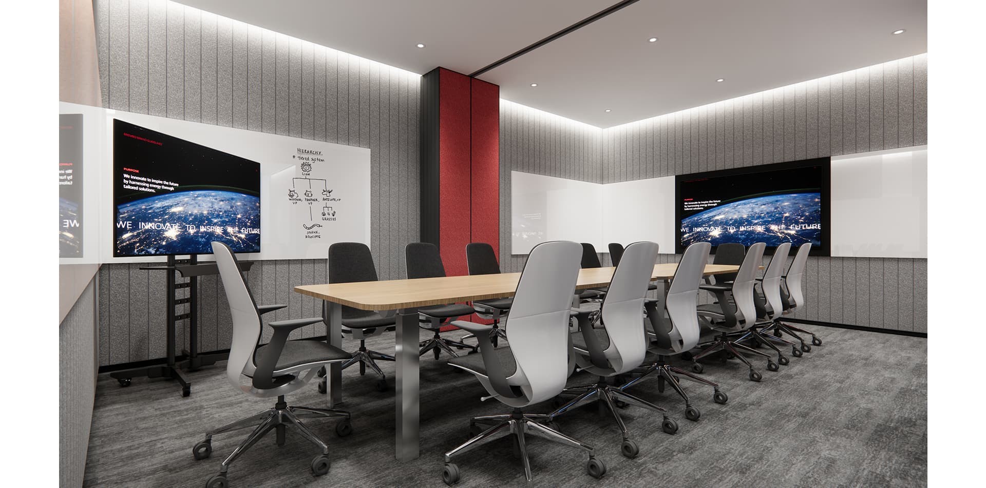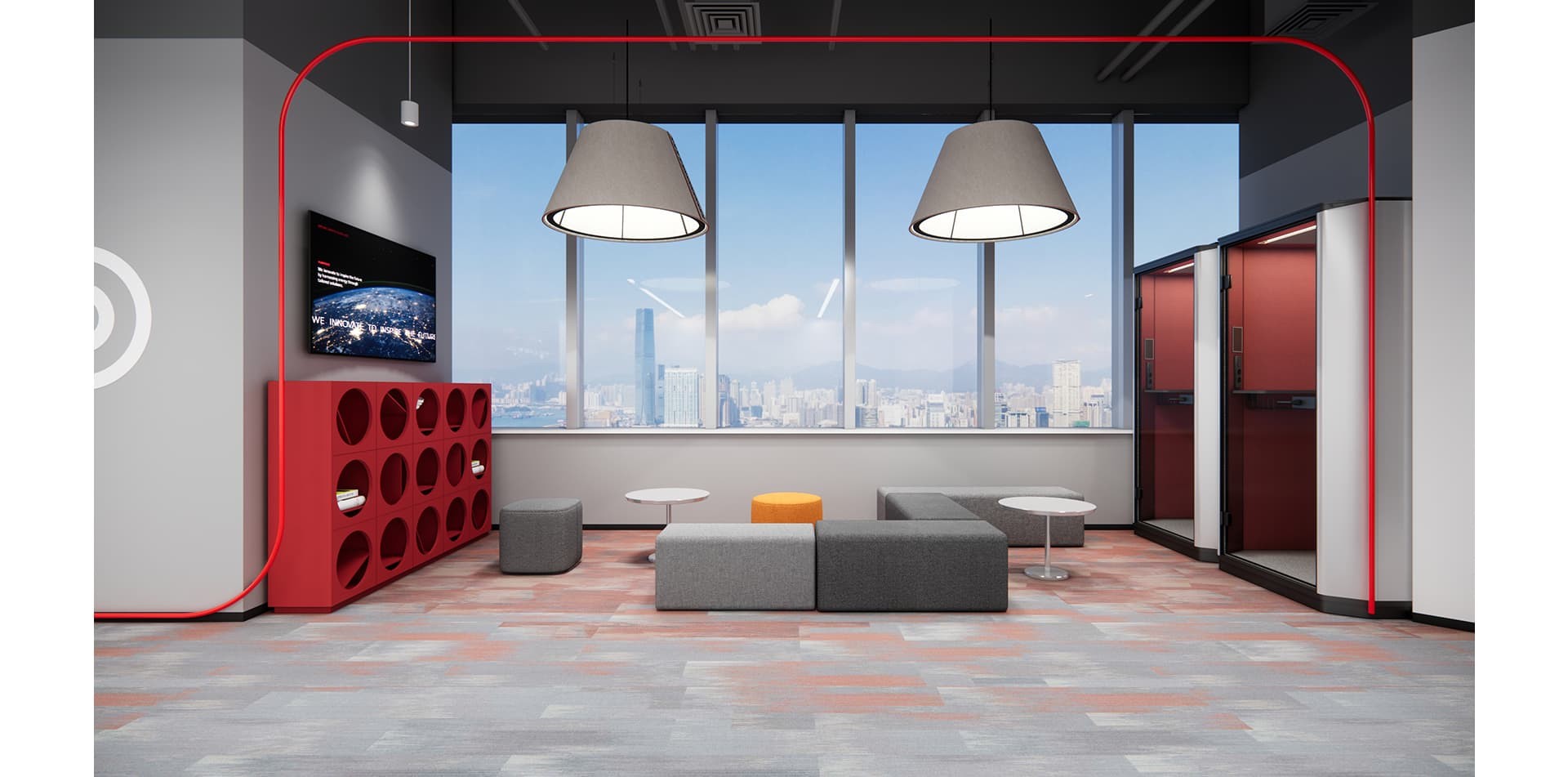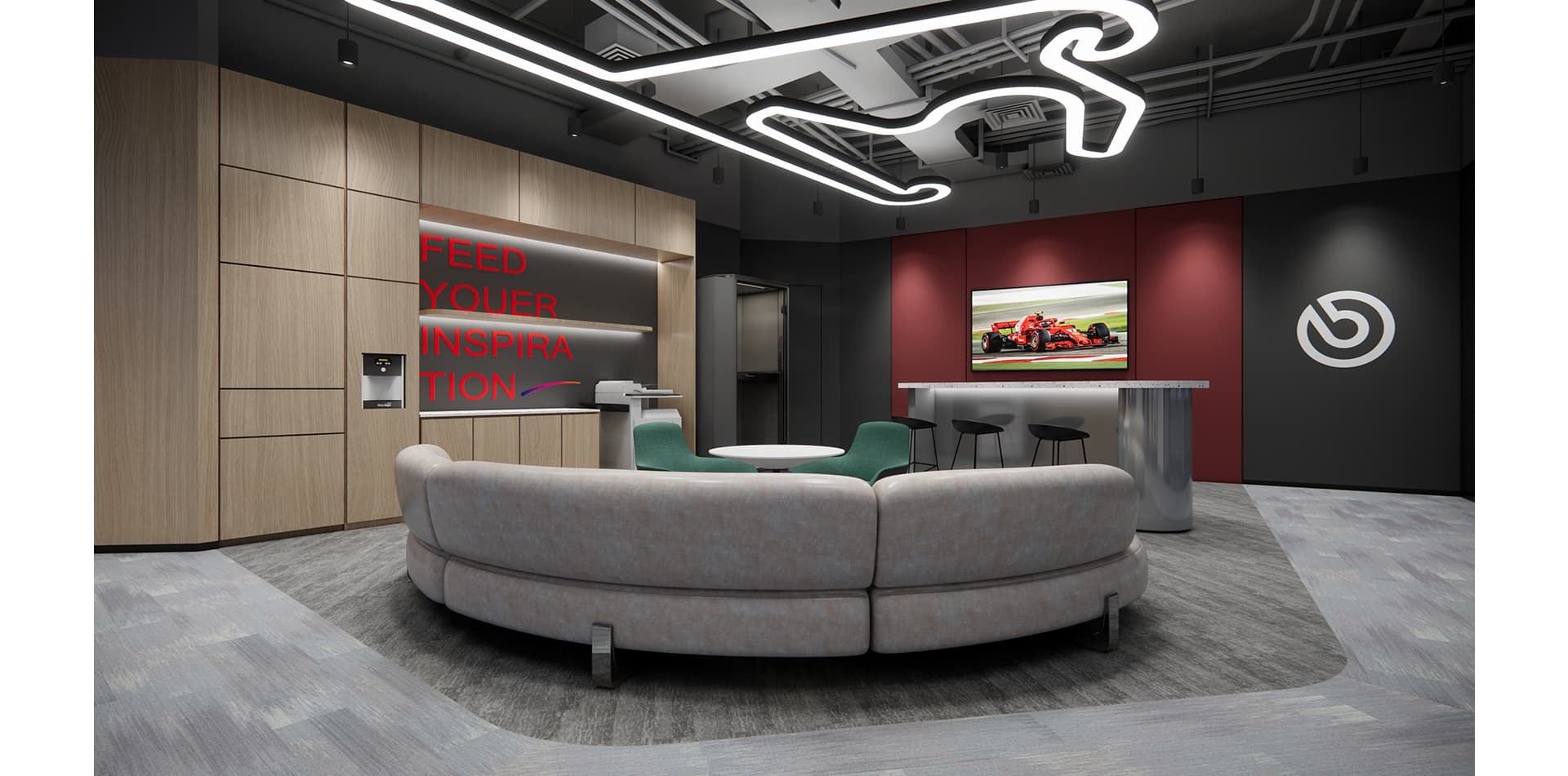 The decoration of Brembo's office highlights elements of industrial style, with the corporate red and white logo colors as the main tone, incorporating some green elements to make the corporate...