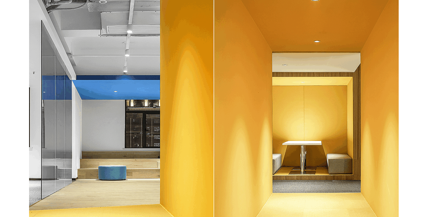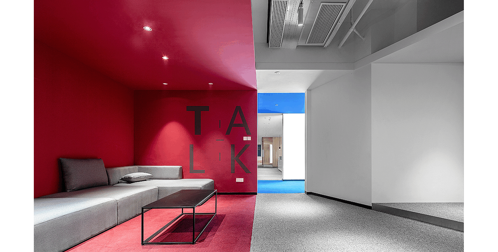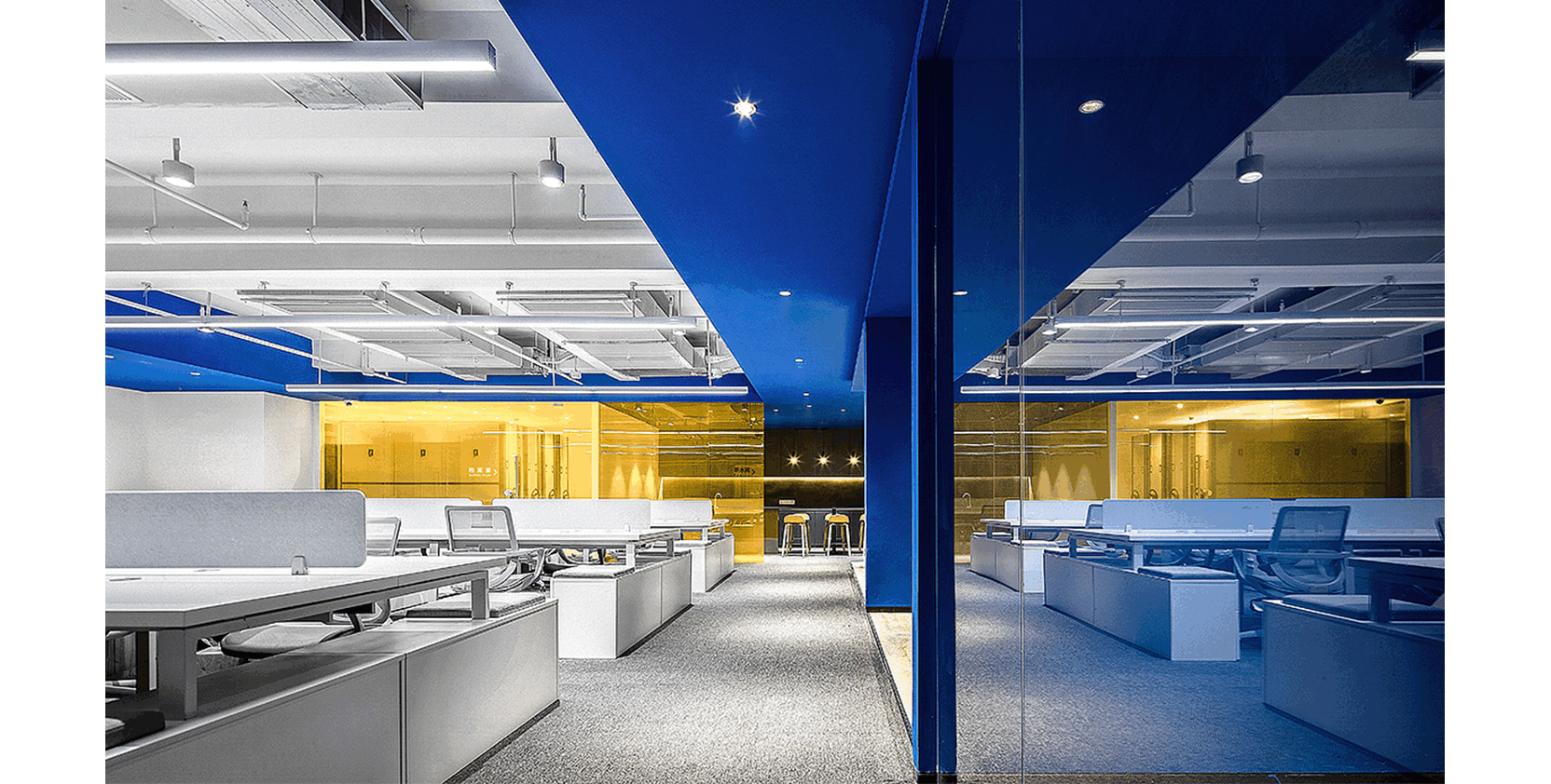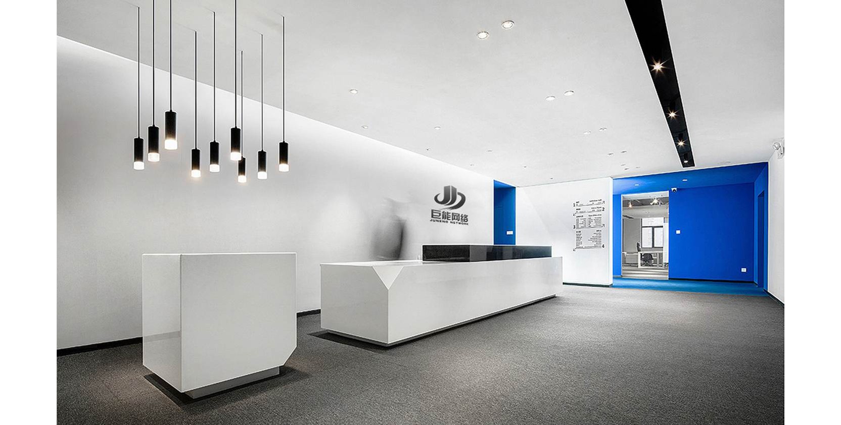Blue and white interweaving, simple and dynamic, is the office decoration feature of this Internet company. Blue represents wisdom and innovation, while white represents purity and efficiency. The overall design not only ...